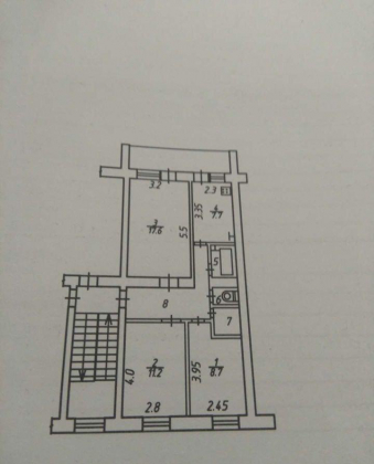 Продается 3-х комн. квартира, 57.5 кв.м., 2/2 эт